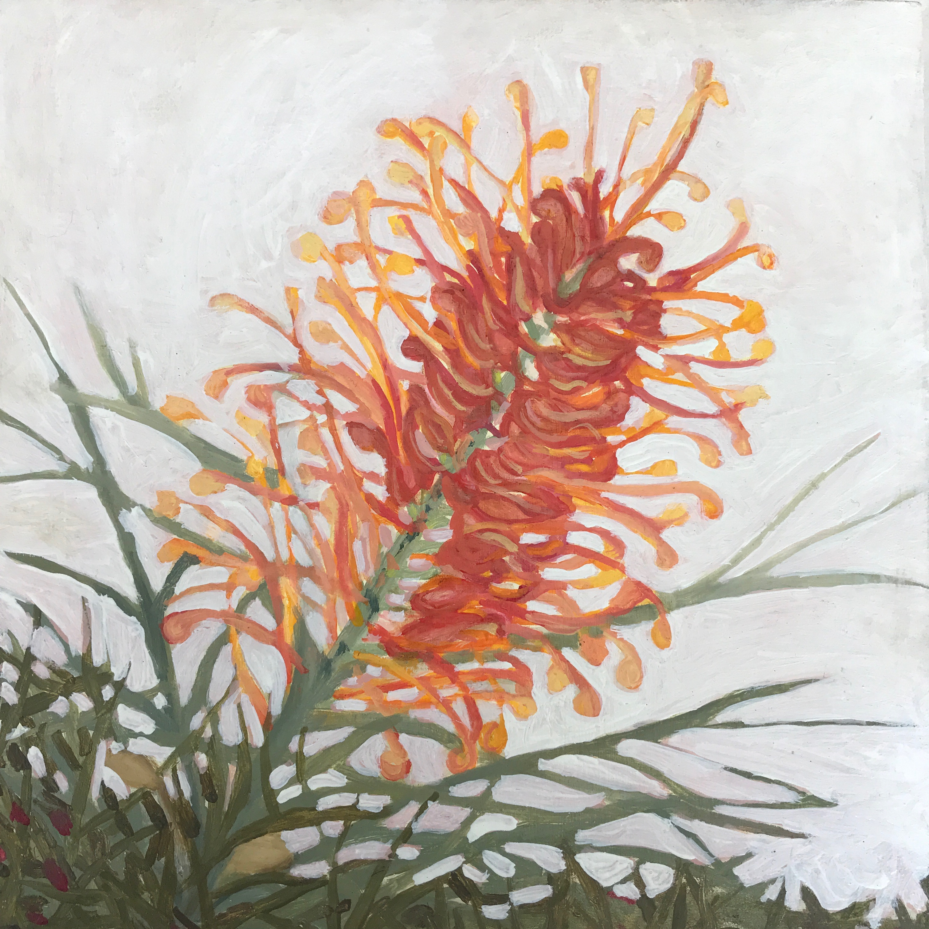 Grevillea oil painting botanical art red orange