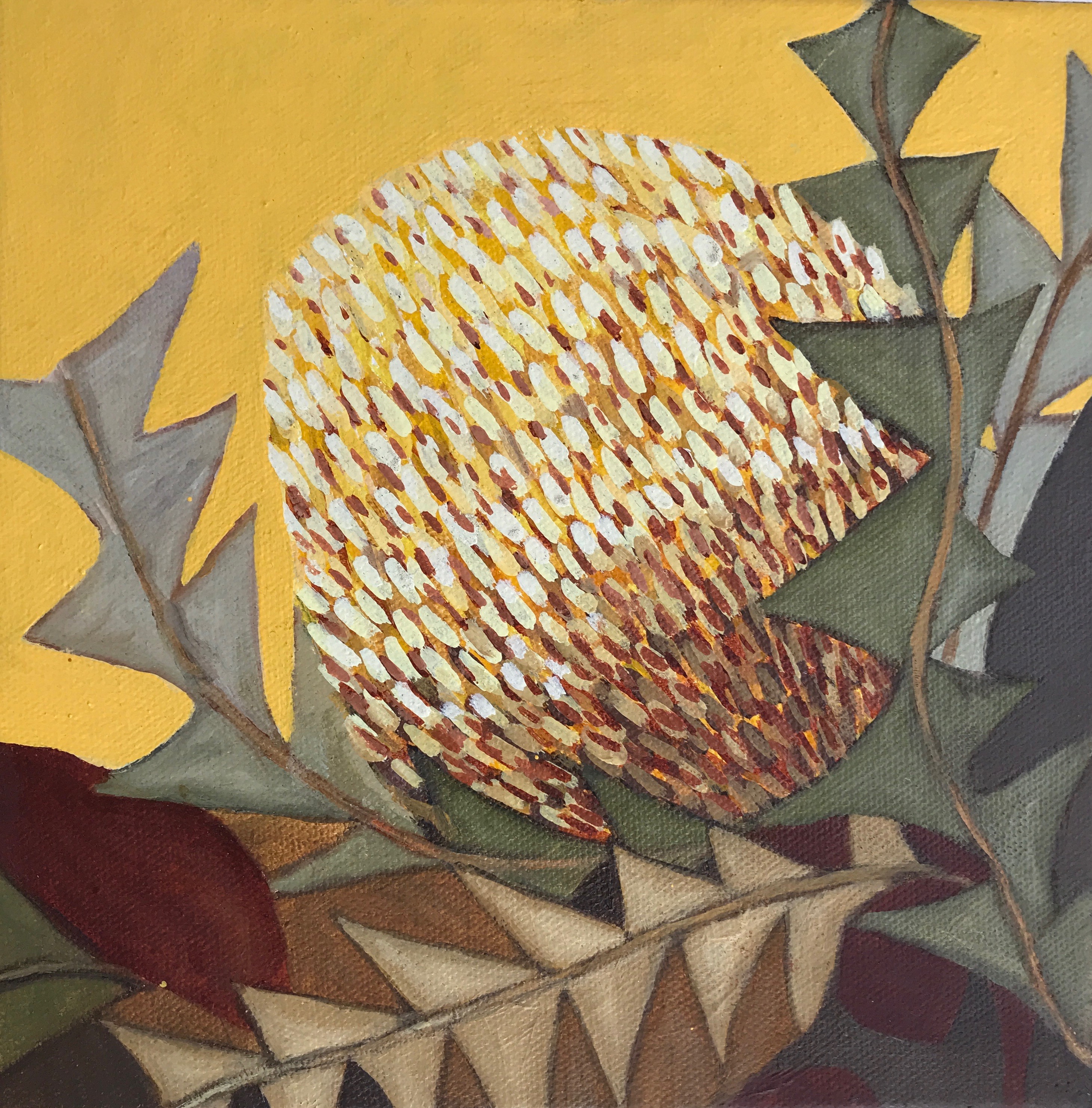 16/52 Banksia, Oil on Canvas, 20 x 20 cms August 28, 2018June 28, 2023 | Judy Banksia Painting Botanical art