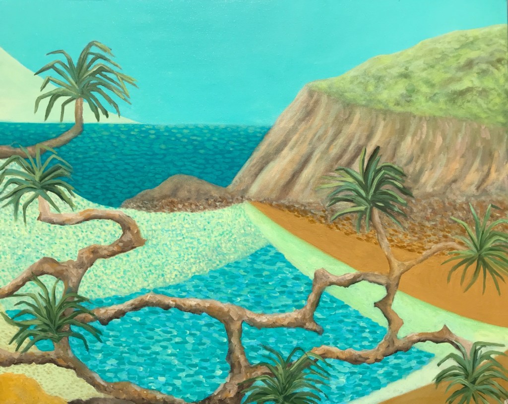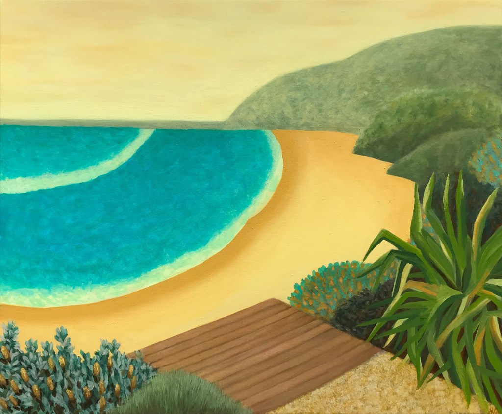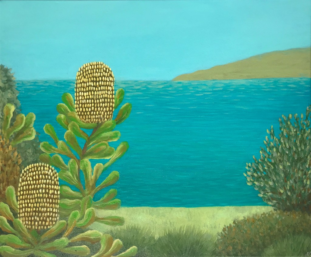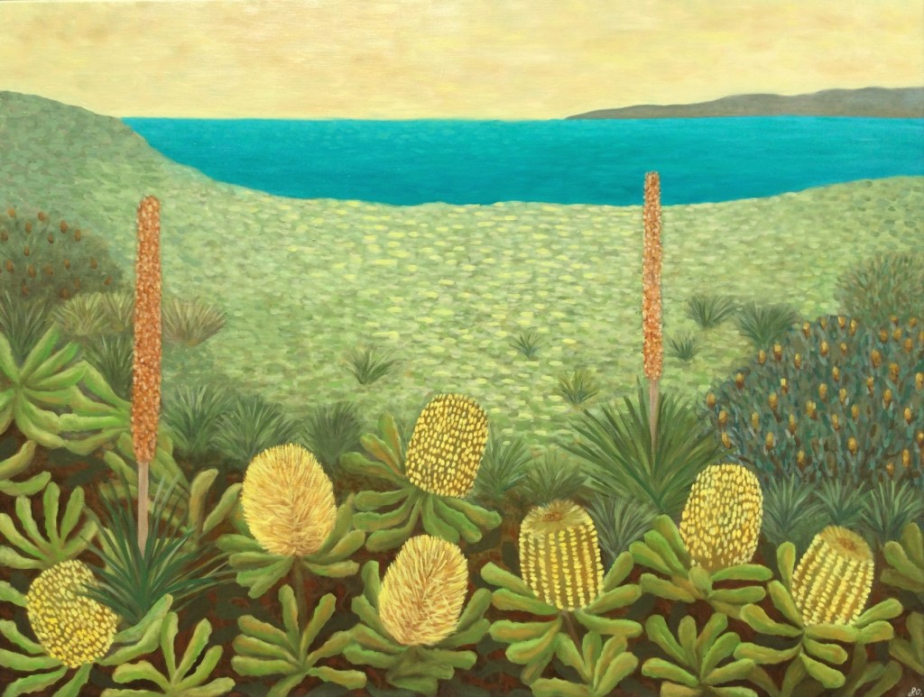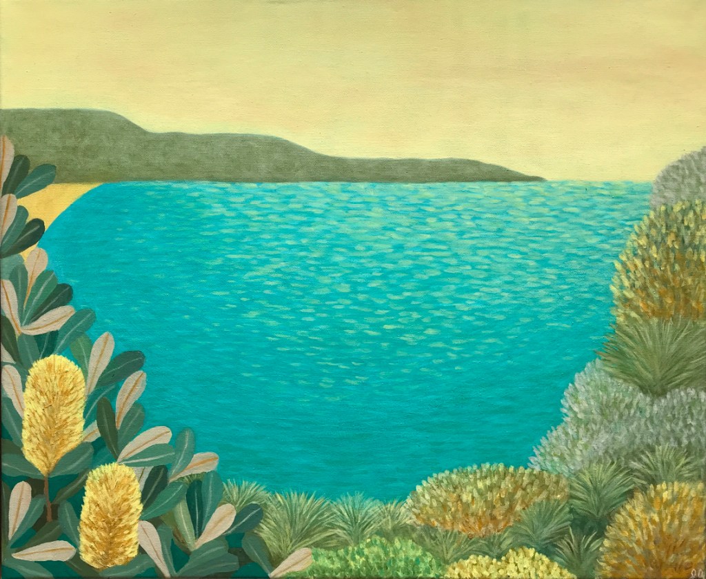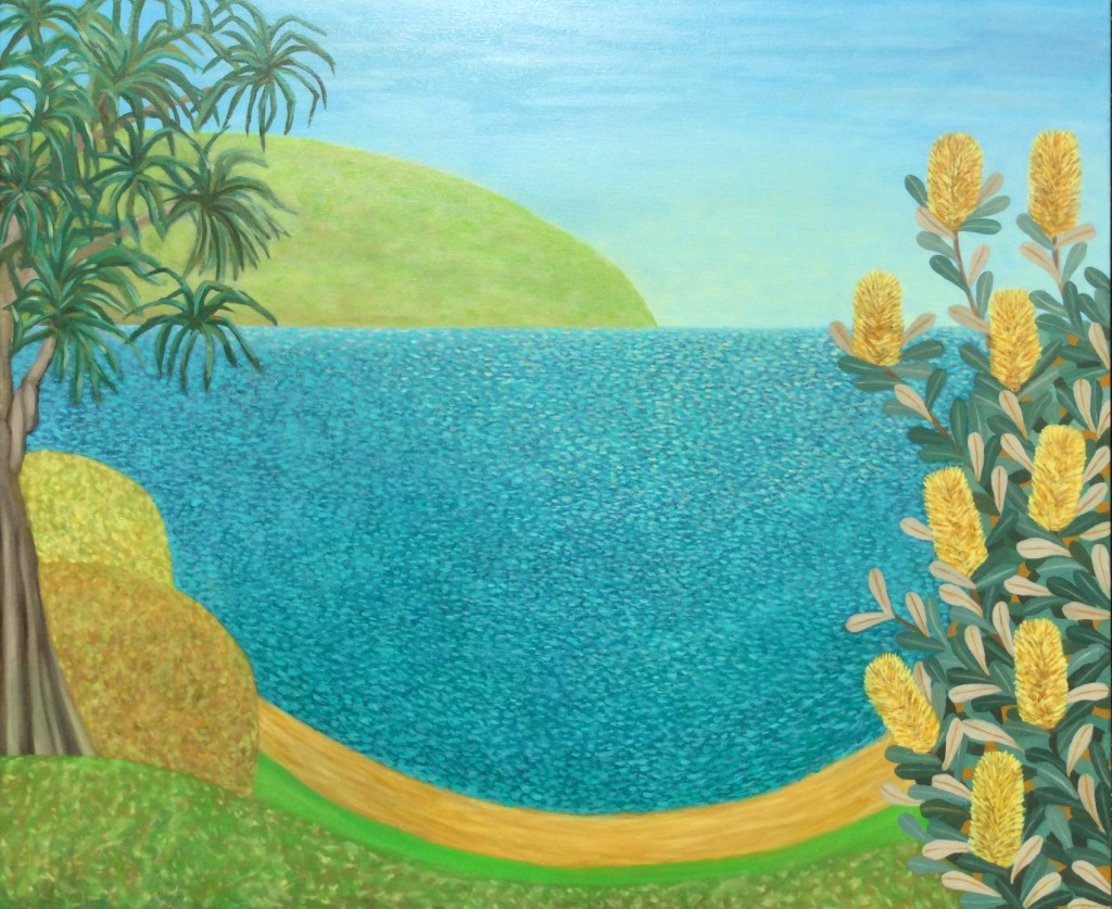 Paradisiacal Yearnings, Oil on canvas, 91 x 121 cmWild Coastline, Oil on canvas, 101×122Sparkling Wild, Oil on canvas, 51 x 61cmAncient Shore, Oil on LInen, 76 x 101cmLittle Beach, Oil on Polycotton, 51 x 61cmImagined Inlet, Oil on canvas, 51 x 61 cmSubtropic Utopic, Oil on Polycotton, 51 x 61 cmThe Beach from the Headland, Oil on canvas, 101 x 101 cmCabarita, Oil on canvas, 61 x 76cmStill Wild, Oil on Canvas, 51 x 61cmCoastal Contemplation, Oil on canvas, 51 x 61 cmBlue and Yellow, Oil on canvas, 51 x 61cmFlowers, Fields and Ocean, Oil on canvas, 61 x 61 cmOceanic Inflorescence, Oil on canvas, 61 x 61 cmBroadwater, Oil on canvas, 30 x 40 cmOceanside Flora 1, Oil on canvas, 40 x 40 cmOceanside Flora 2, Oil on canvas, 40 x 40 cm